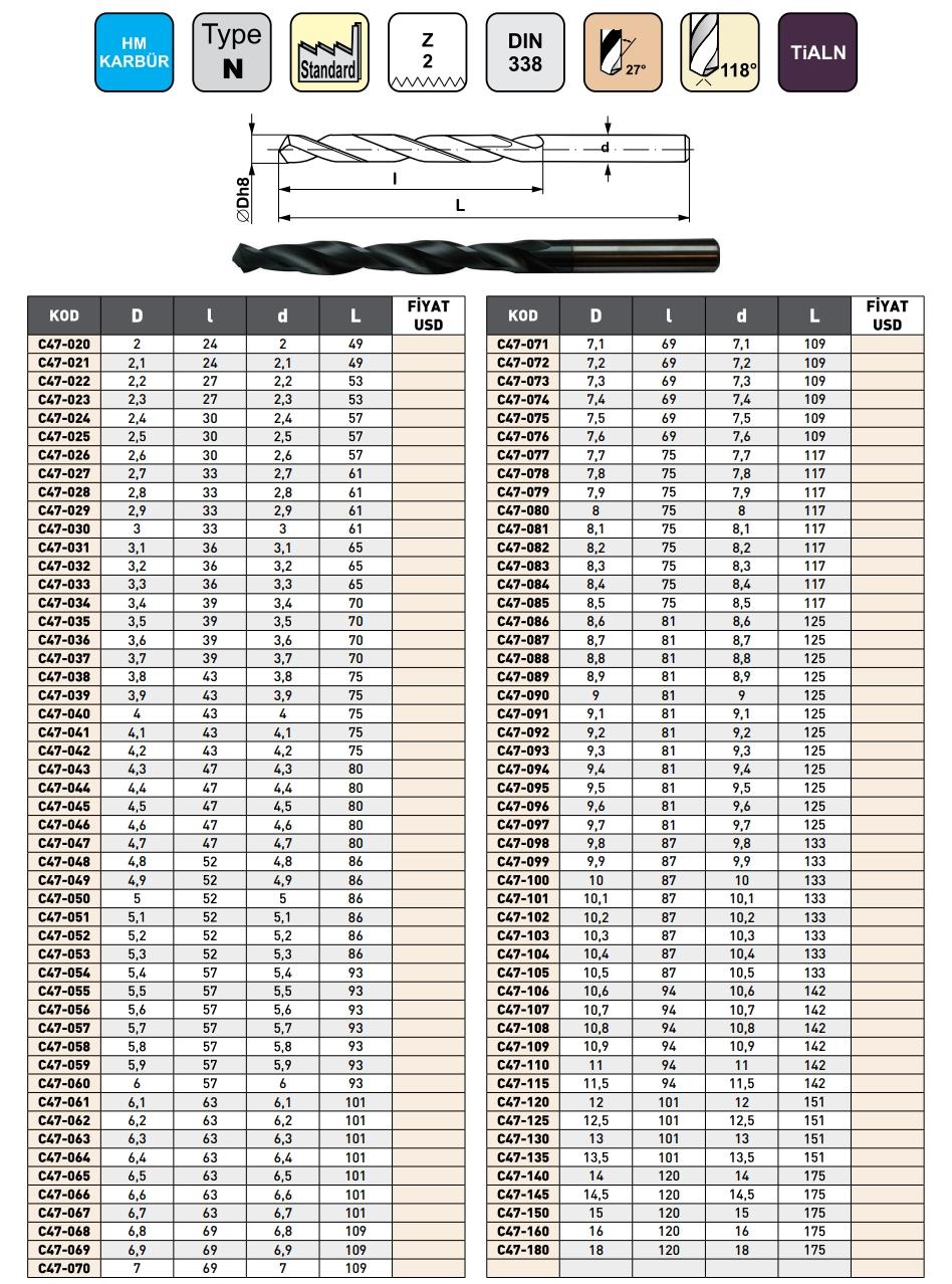 Kılavuz matkap çapları